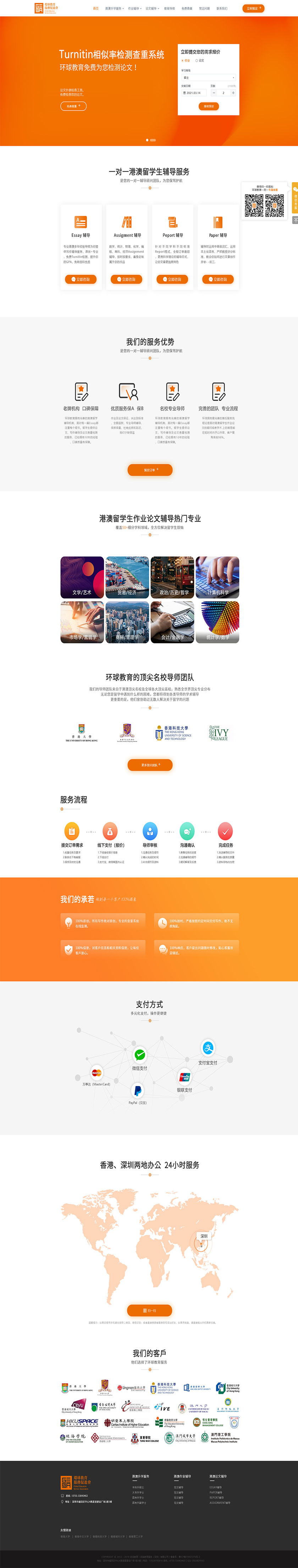 Project Description 环球教育拥有完善的港澳留学辅导机制,面对每一篇Essay都注重每个细节。留学生提供论文、写作辅导及论文查重检测的服务,已经拥有10年的经验,口碑质量有保障。 Official website address 泉州http://essay.hkyauka.com/index.asp I want to share